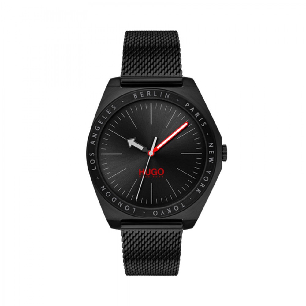 Hugo 1530108-C da Uomo ha cassa Acciaio di 44mm con cinturino in Acciaio Nero. Movimento Quarzo Solo Tempo e impermeabilità 3ATM