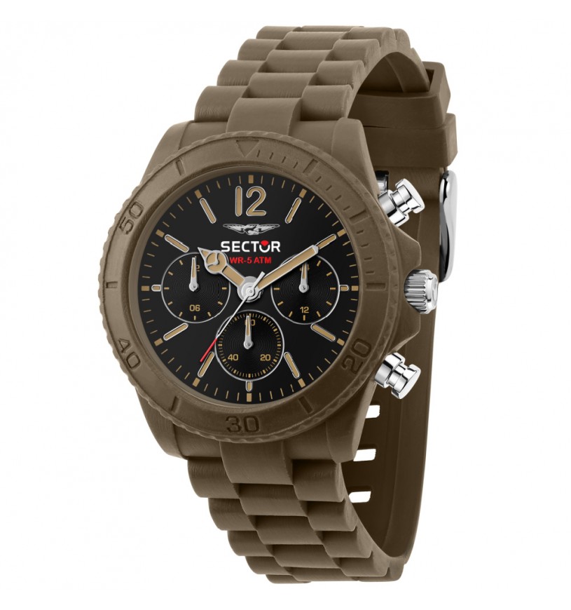 Sector R3251549003 da Uomo ha cassa Acciaio di 42mm con cinturino in Silicone Marrone. Movimento Multifunzione e impermeabilità 5ATM