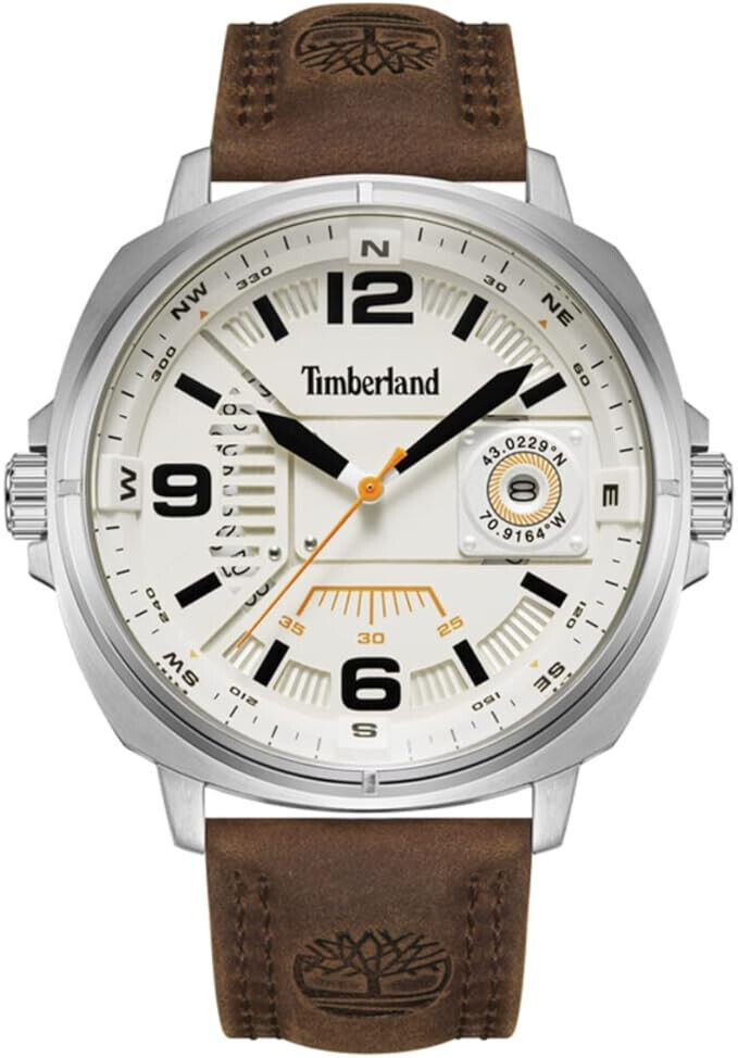 Timberland TDWGB2201403 da Uomo ha cassa Acciaio di 47mm con cinturino in Pelle Marrone. Movimento Quarzo Solo Tempo e impermeabilità 5ATM